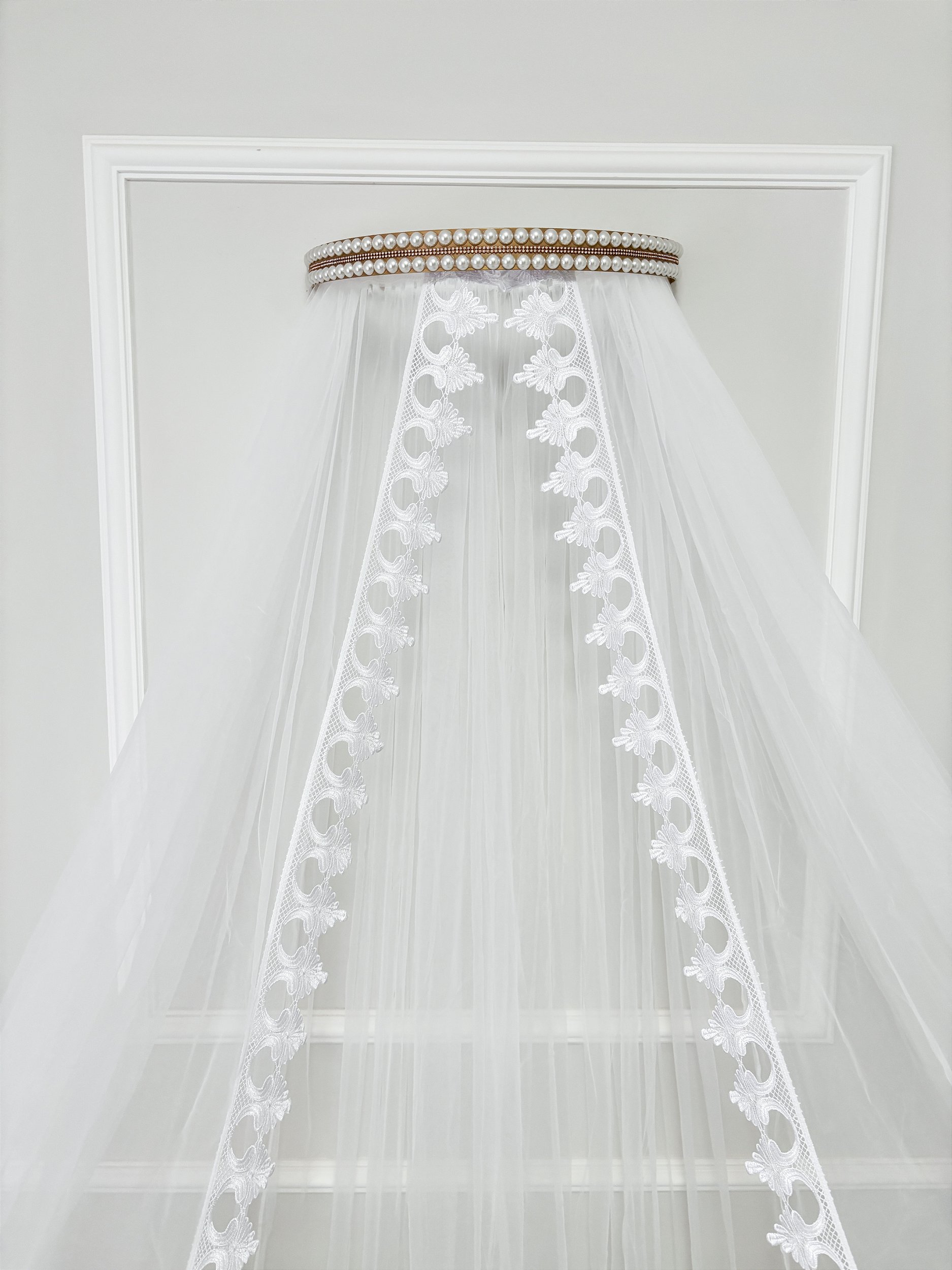 Nosso Mosquiteiro possui uma maravilhosa renda na frente mantendo padrão de qualidade, o mosquiteiro pode ficar totalmente fechado na parte de trás, ou aberto também para que posso colocar um quadrinho, basta regular na hora da instalação. instalação bem simples.