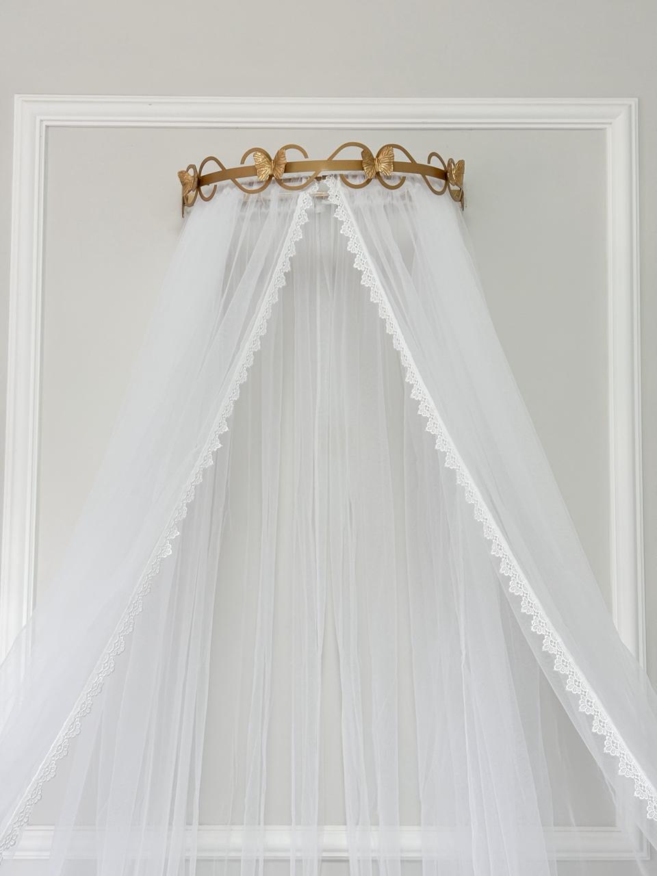 Nosso Mosquiteiro possui uma maravilhosa renda na frente mantendo padrão de qualidade, o mosquiteiro pode ficar totalmente fechado na parte de trás, ou aberto também para que posso colocar um quadrinho, basta regular na hora da instalação. instalação bem simples.