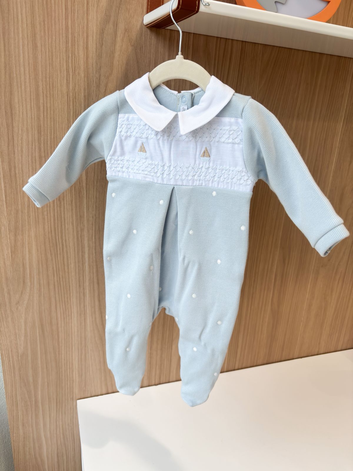 O macacão possui bordados delicados, que trazem charme e sofisticação à peça, tornando-a uma escolha especial para a chegada do bebê e para as primeiras fotos. O acabamento cuidadoso garante conforto sem abrir mão da elegância.